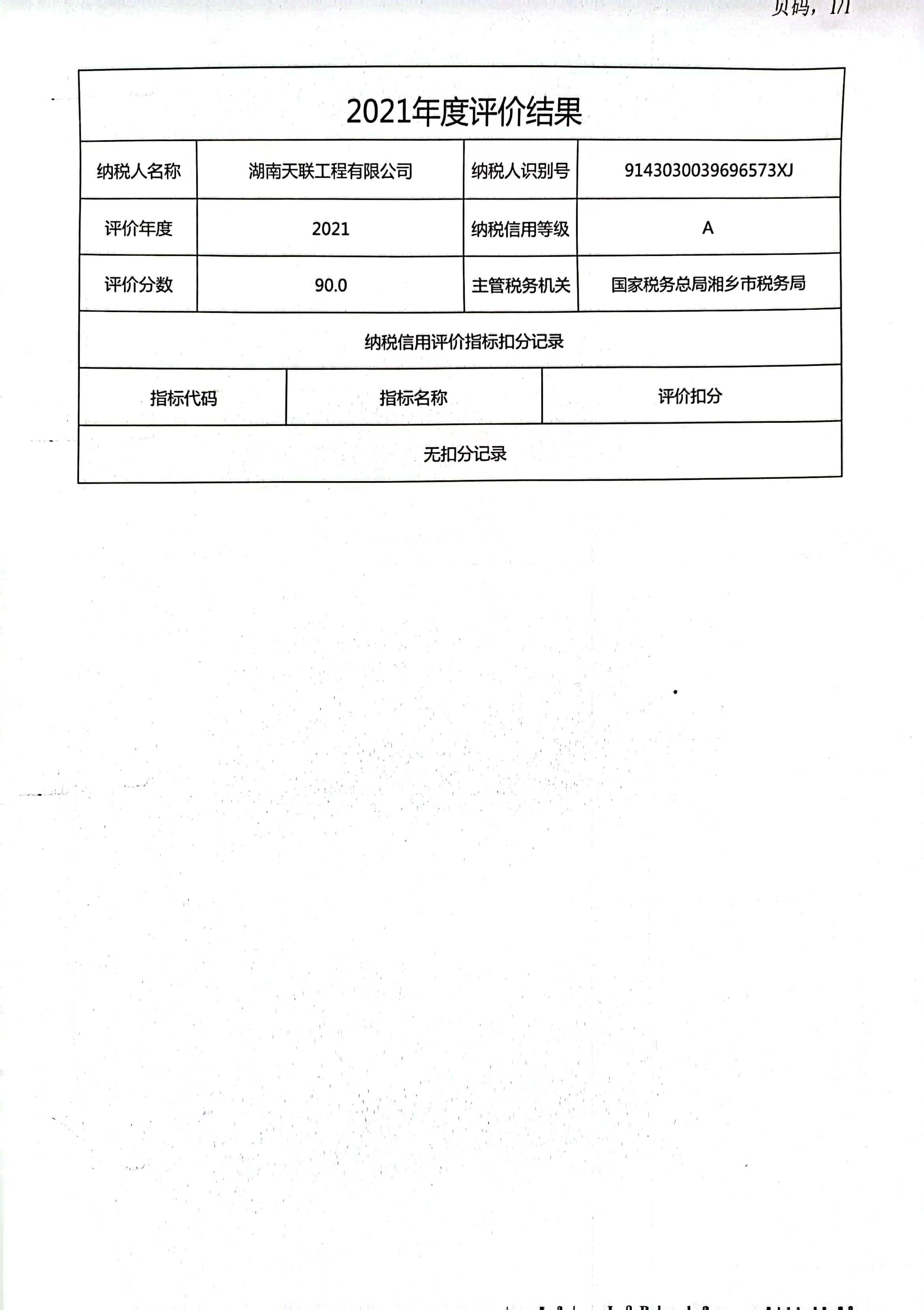 企業(yè)納稅信用等級報告: