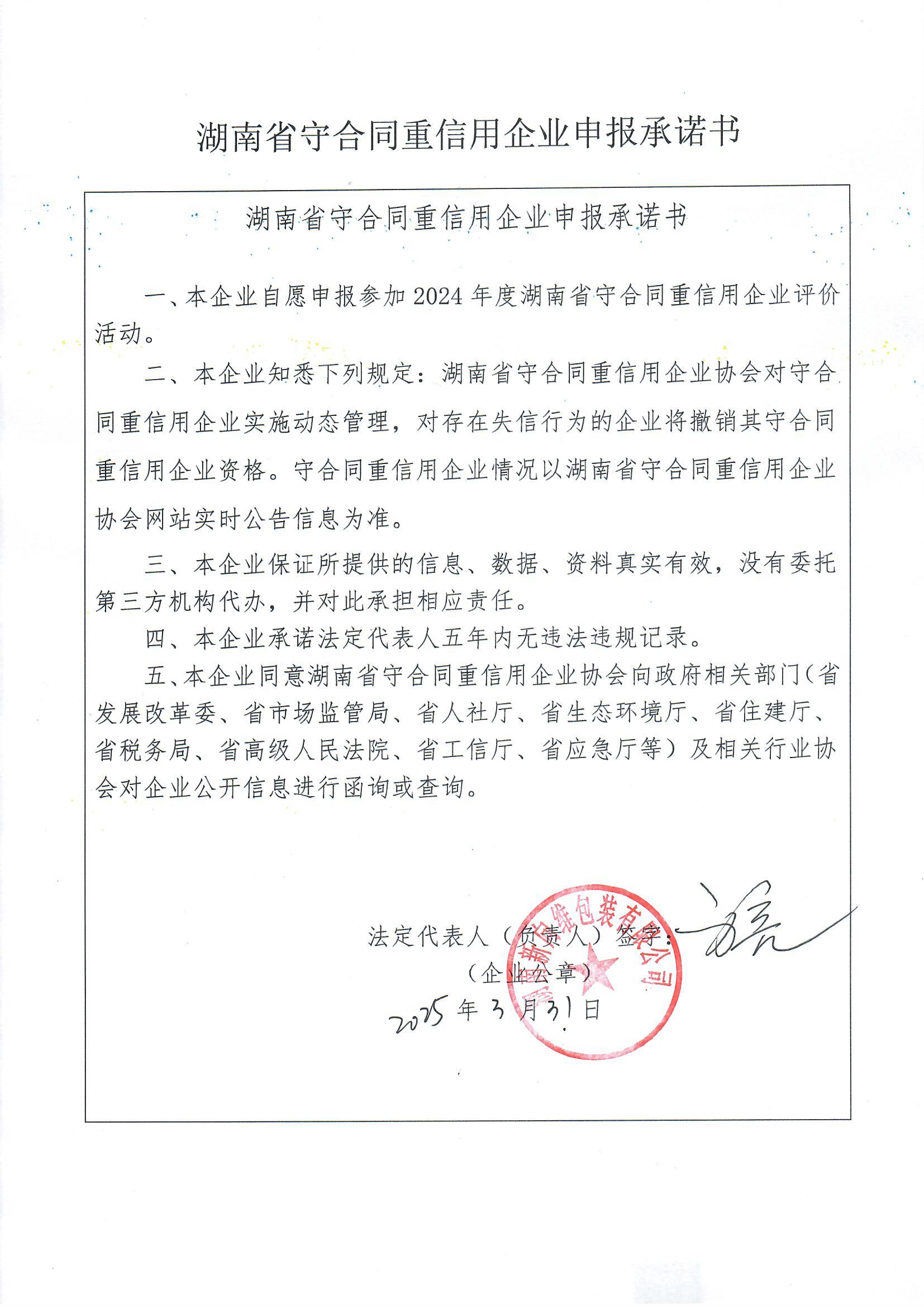 本企業(yè)根據(jù)《湘潭市守合同重信用企業(yè)申報(bào)規(guī)定》等編制 2024 年度企業(yè)信用報(bào)告書(shū),并保證本報(bào)告書(shū)內(nèi)容真實(shí)、準(zhǔn)確、完整。