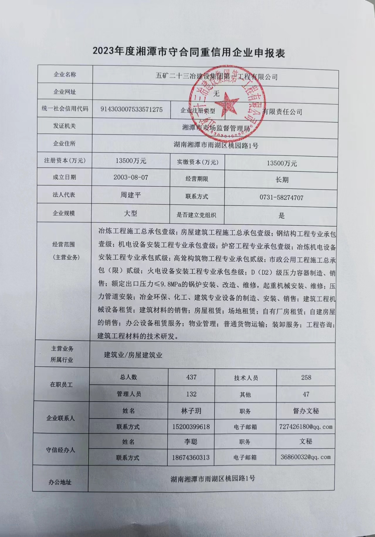 本企業(yè)根據(jù)《湘潭市守合同重信用企業(yè)申報規(guī)定》等編制 2023 年度企業(yè)信用報告書,并保證本報告書內容真實、準確、完整。